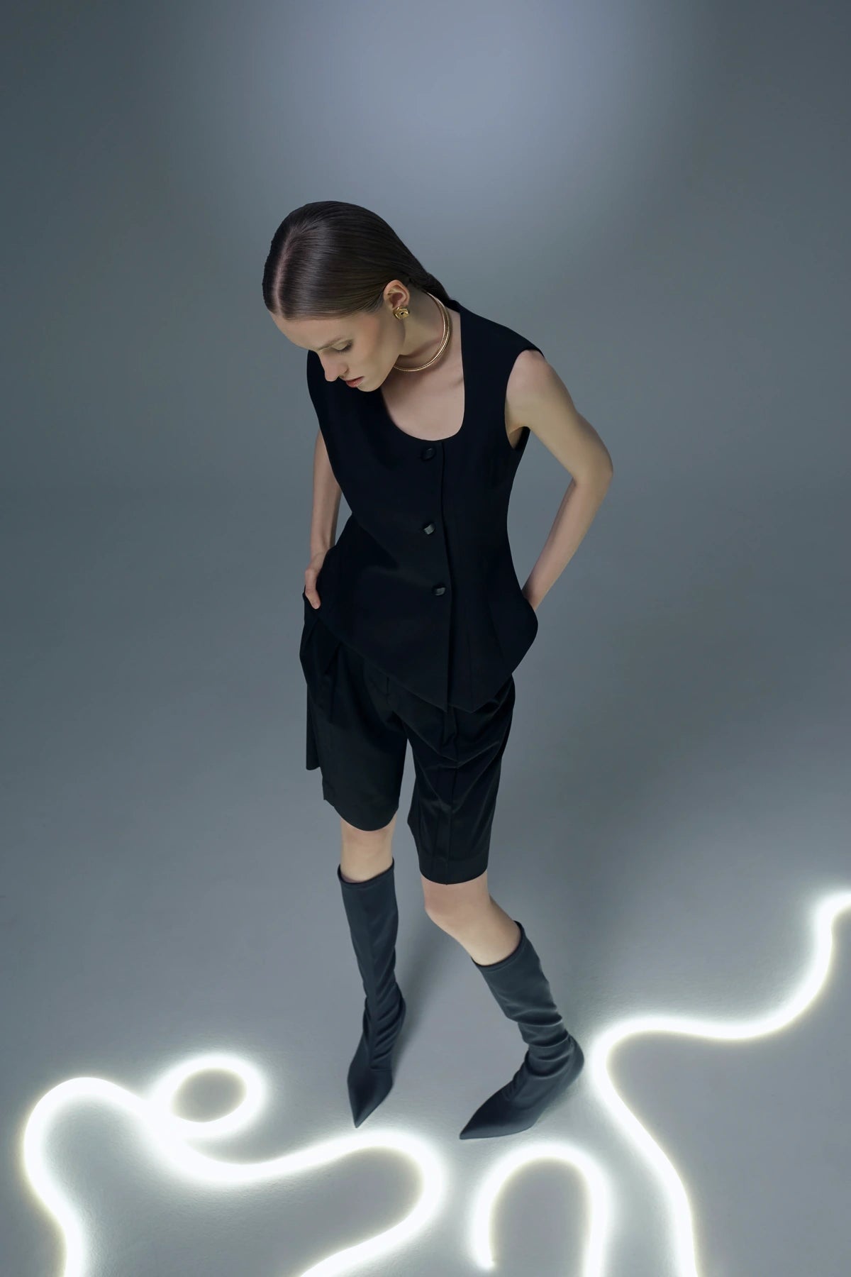 Movement flows uninterrupted through every piece. As your body navigates the day's choreography, these garments move in perfect harmony—neither restricting nor defining, but accompanying. They honor the body's wisdom while maintaining their architectural integrity. They are the timeless companions on your journey through moments both ordinary and extraordinary.