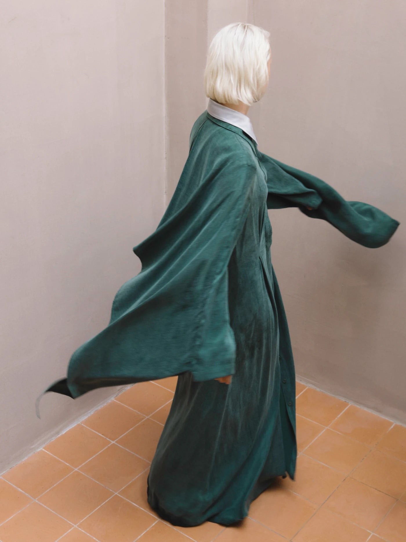 Silhouettes breathe and open space around the body, while layering acts as a combinatory system: pieces interlock, transform and offer multiple readings. This is minimalism charged with emotion — tactile textures, a restrained palette and precise construction that changes with you.